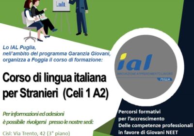 Insieme a Ial Puglia Bari, si propone un corso gratuito di Lingua Italiana per stranieri (Celi 1 ' A2), con la ce...